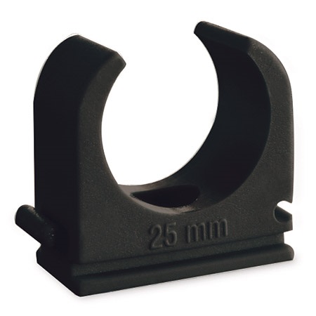 Características: Elevada resistencia térmica (-40º C/+80º C). Su elevada tenacidad y capacidad de retención, permiten una instalación fácil y segura con una simple presión sobre el tubo (clic). Posibilidades fijación a través de tirafondos M-6, tornillos tradicionales, tacos clavo y guías.