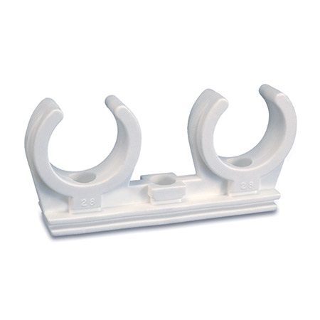 Características: Elevada resistencia térmica (-40º C/+80º C). Su elevada tenacidad y capacidad de retención, permiten una instalación fácil y segura, con una simple presión sobre el tubo (clic). Posibilidades de fijación con tirafondos M-6, tacos y tornillos tradicionales, tacos clavo y guías (dos alturas).