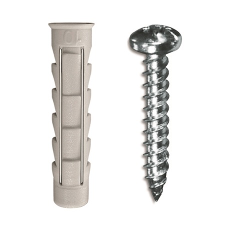 Aplicación: Tacos de gran expansión para la fijación sobre materiales macizos o huecos. Se pueden utilizar tornillos de rosca madera, aglomerado, rosca chapa, etc. de diferentes diámetros.