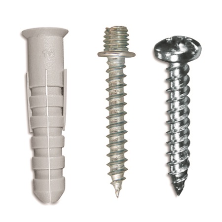 Características: Resistentes al envejecimiento y degradación, soportando temperaturas entre –40 ºC y +80 ºC. Su diseño garantiza un excelente anclaje y sus aletas especiales antirrotativas, impiden su giro durante el montaje. El collarín evita el deslizamiento del taco hacia el interior del orificio, facilitando la entrada del tornillo.