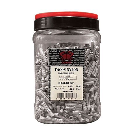 Aplicación: Tacos de gran expansión, ideales para tornillos de rosca madera, para abrazaderas de nylon, grapas metálicas, aglomerado, etc.