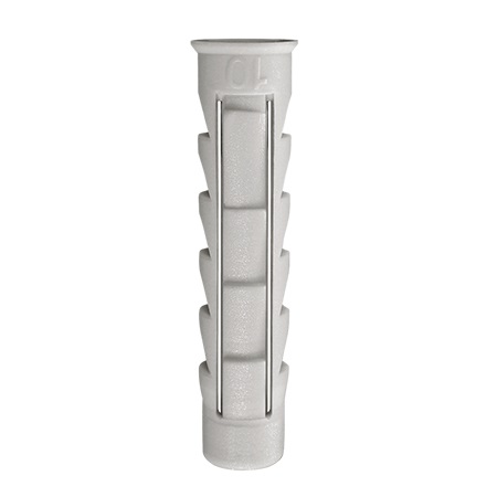 Aplicación: Tacos de gran expansión para la fijación sobre materiales macizos o huecos. Se pueden utilizar tornillos de rosca madera, aglomerado, rosca chapa, etc. de diferentes diámetros.